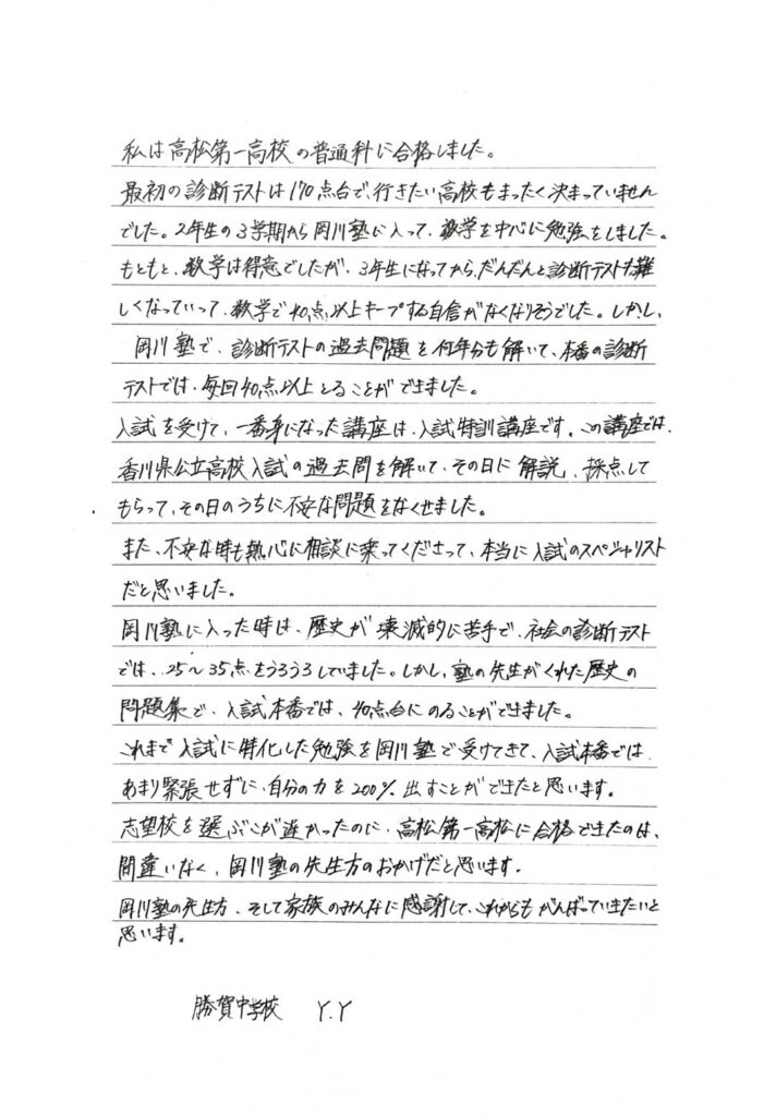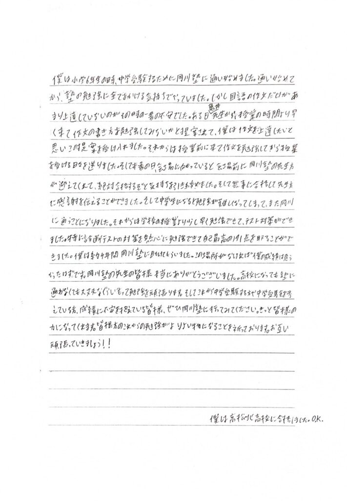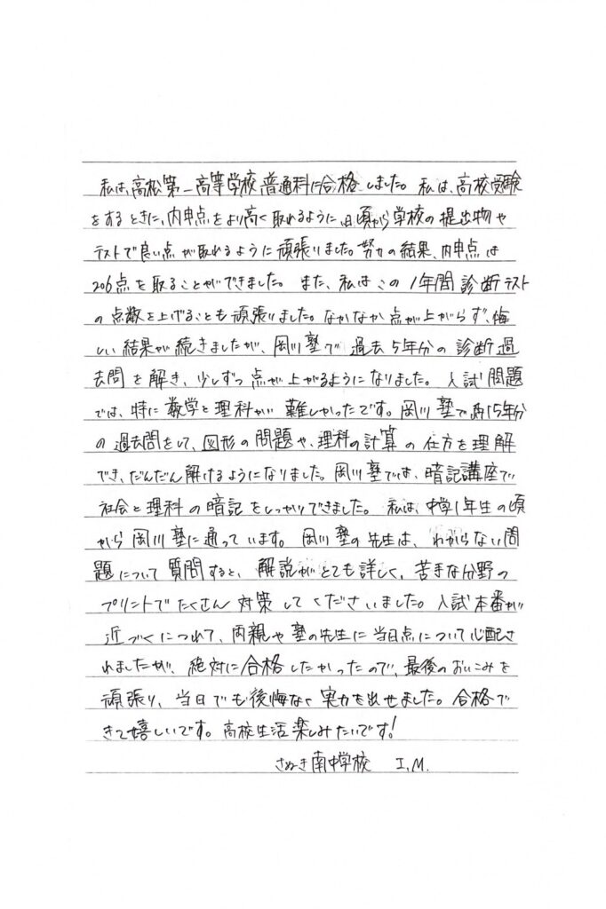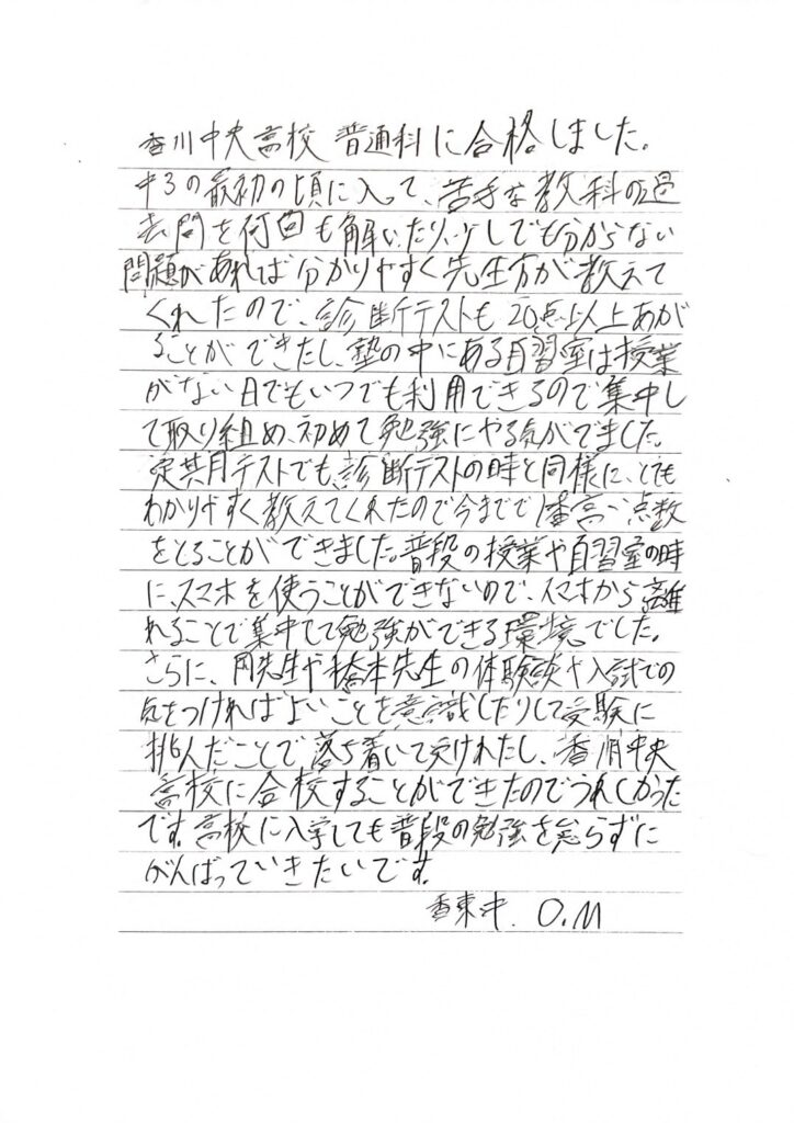 - 高松市上位4校【3年連続】全員合格(合格率100%) (高松高校・高松第一高校・高松桜井高校・高松西高校) 厳しい競争の中、受験した塾生全員が志望校への切符を手にしました。この「3年連続」という数字は、岡川塾の指導法が一時的なものではなく、確実に実力を伸ばすものであることを証明しています。