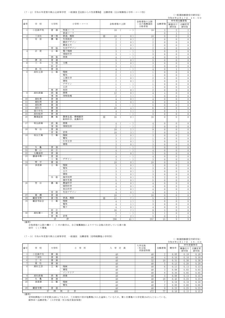 今年も、香川県内の公立高校では定員に対し出願者が上回る学校もあり、人気校・学科では高倍率となっているケースも確認されています。